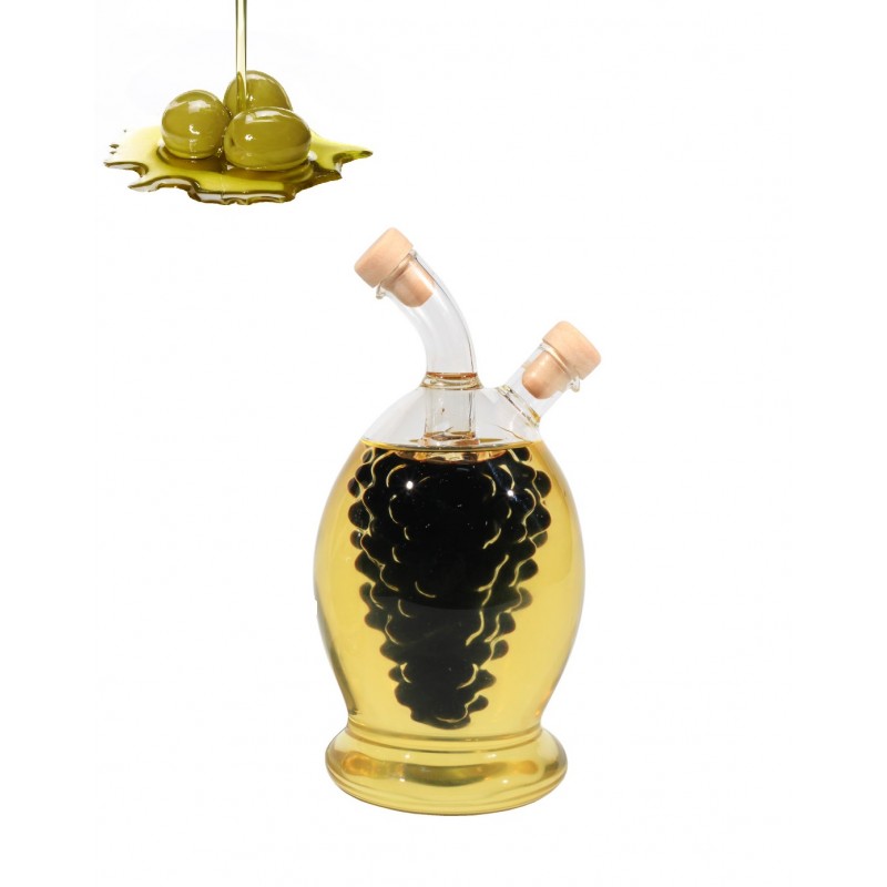 Oliviera strugure 500 ml in forma de strugure. Interiorul are forma unui ciorchine de strugure si se umple cu otet iar exteriorul are forma unei olive si se umple cu ulei. Sticla este realizata manual si are capacitata de 500 ml.