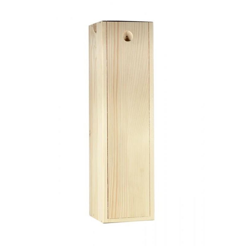 Cutie din lemn pentru o sticla de vin cu dimensiunile interioare: inaltime 350 mm si diamtru 85 mm.
