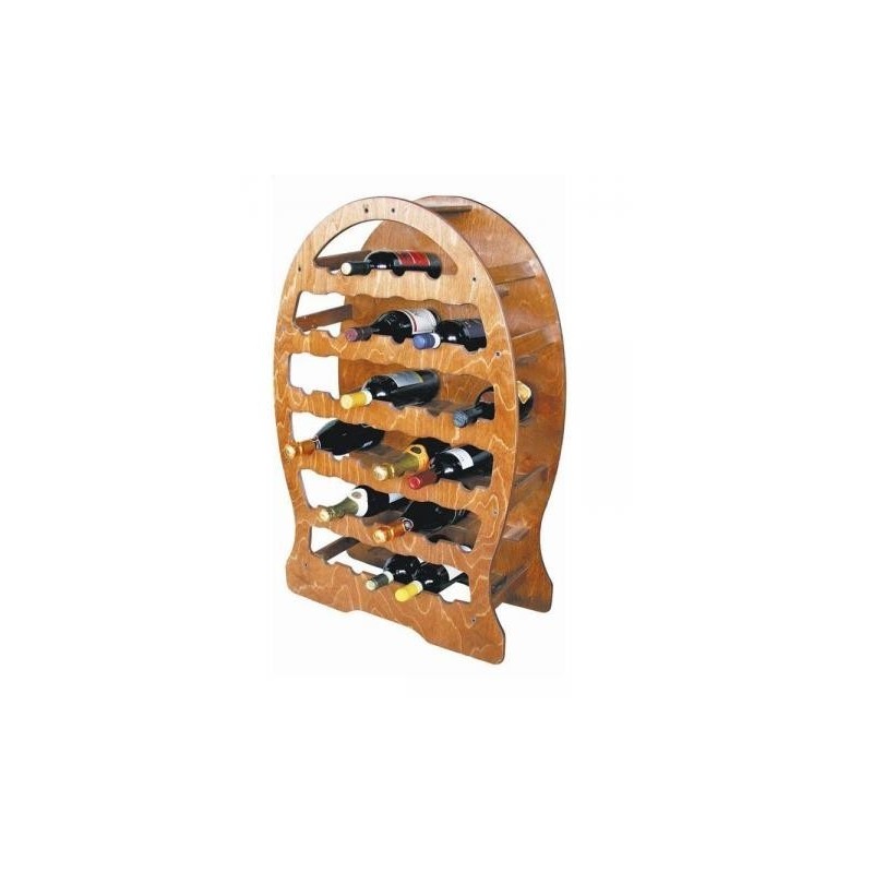 Raft lemn pentru 33 sticle vin in forma de butoi.