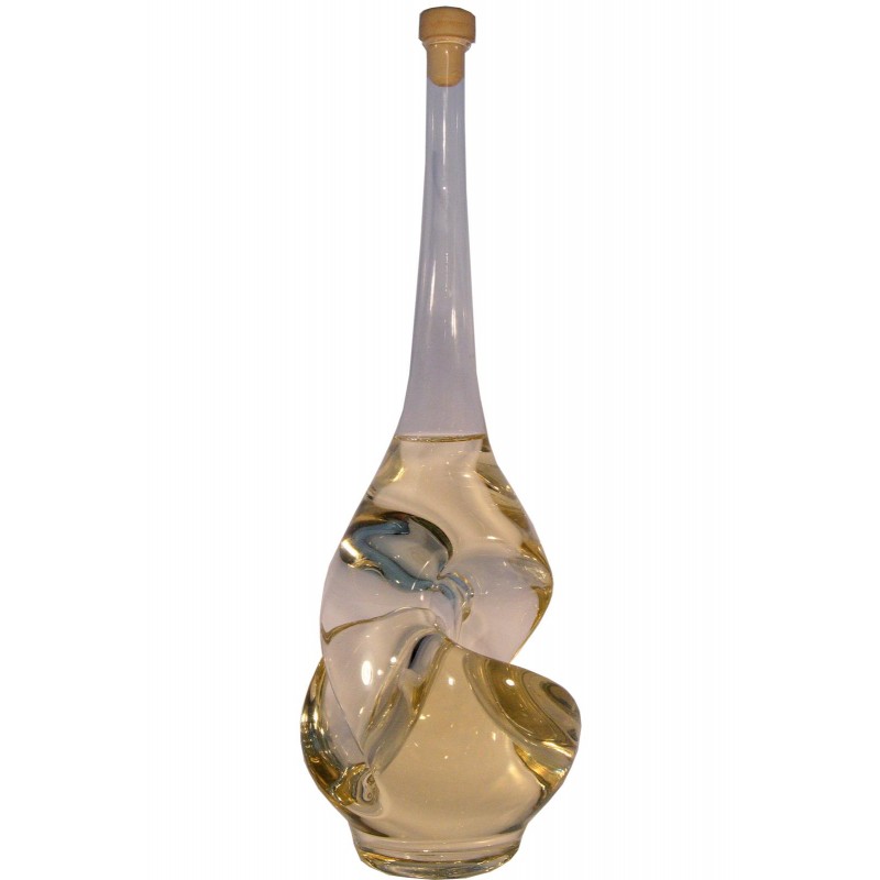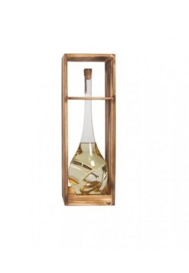 Sticla in forma de balon rasucit, realizata manual, imbuteliata cu tuica.Pastrata intr-un suport de lemn, un cadou elegant pentru iubitorii de frumos.