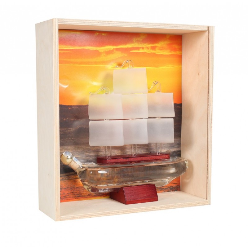 Sticla in forma de corabie, 200 ml, imbuteliata cu distilat pruna 38. Producator: Distileria Voica.