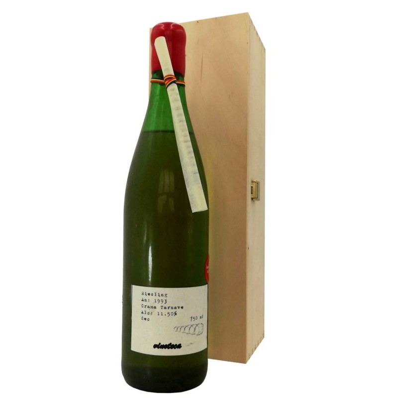 Riesling 1993 Tarnave, vin alb de colectie oferit in cutie de lemn.